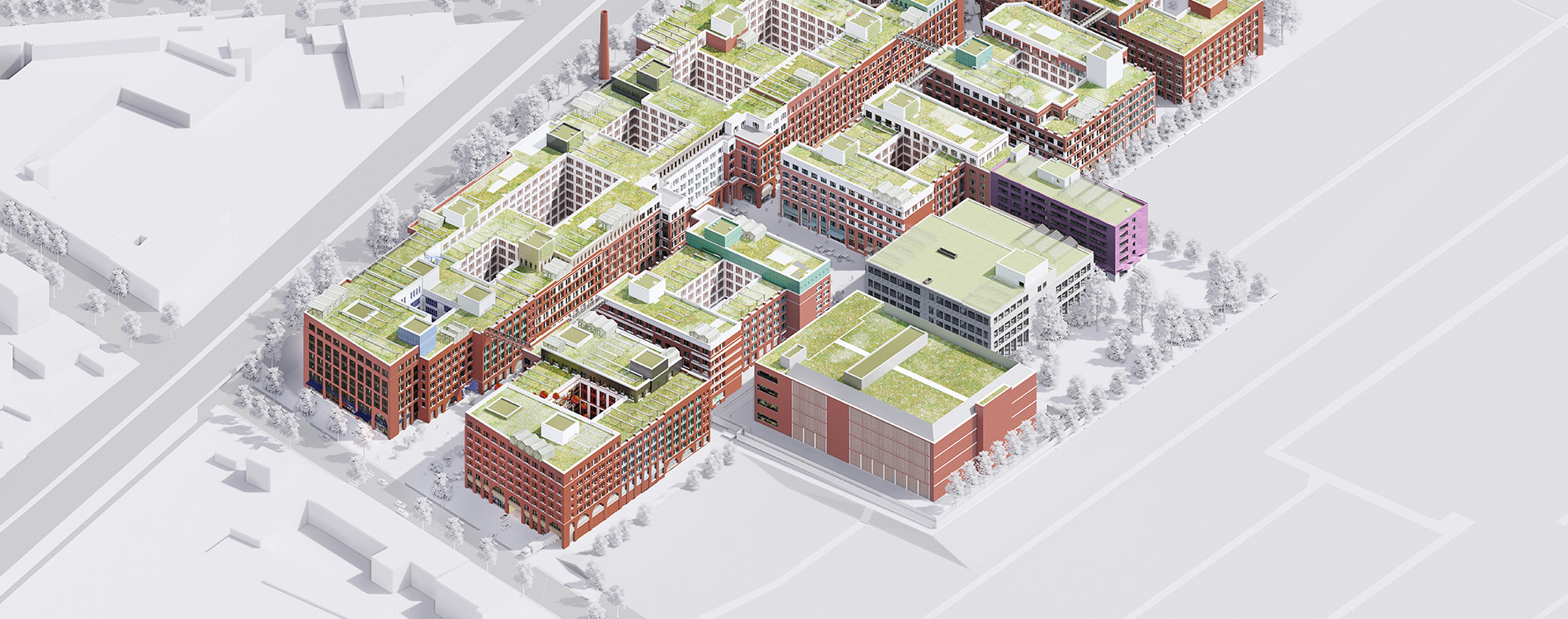 Auf dem Gelände der ehemaligen Reemtsma-Zigarettenfabrik in Berlin-Schmargendorf entsteht ein neuer Stadtteil mit Gewerbe, Hotel, Gastronomie und Kulturangeboten.